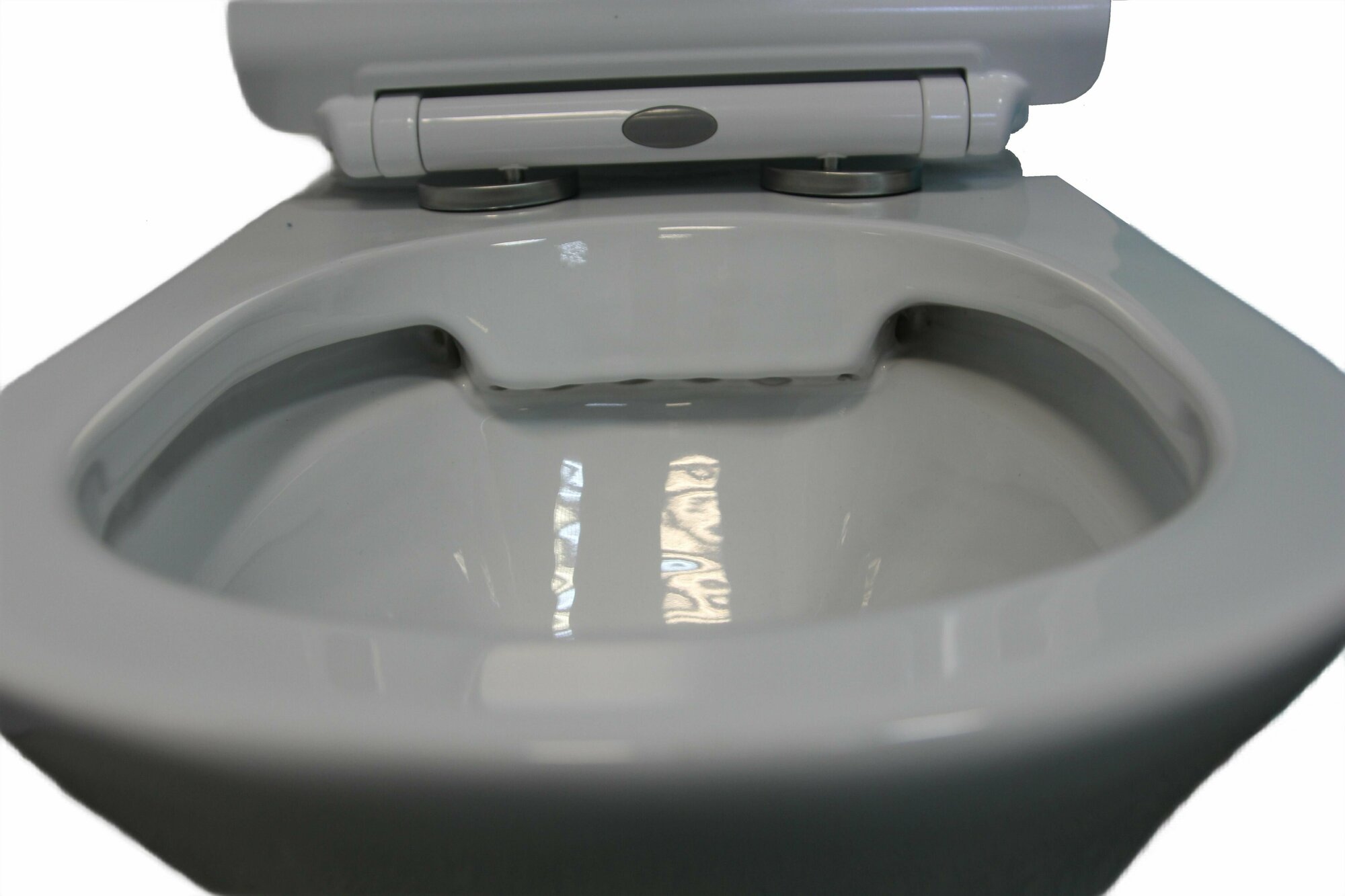 Бочок узкий, встает вплотную к стене, за счет этого экономит место. Вполне тихо смывает и набирает воду. За счет того что унитаз безободковый, моется все легко, труднодоступных мест и с внешнйе стороны нет. |