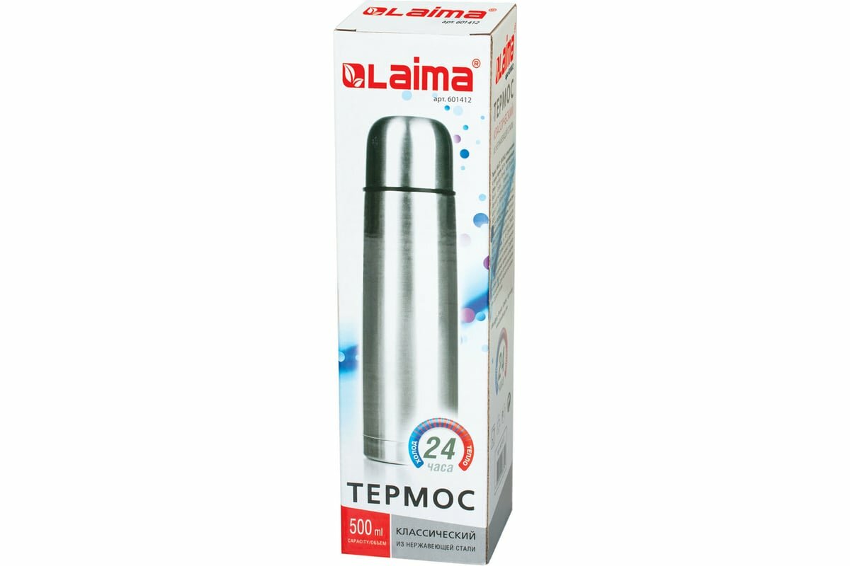 Купить Термос LAIMA классический с узким горлом, 0,5 л, нержавеющая сталь,601412