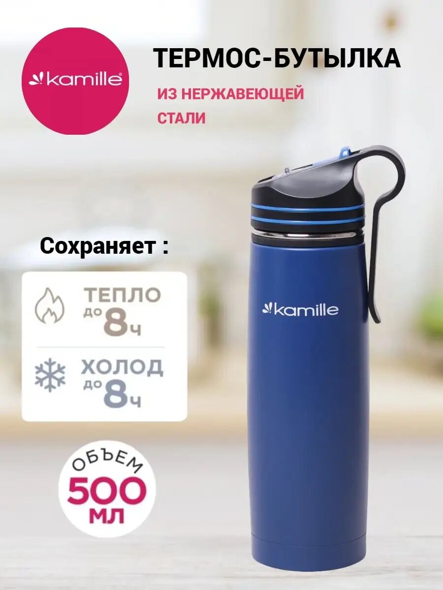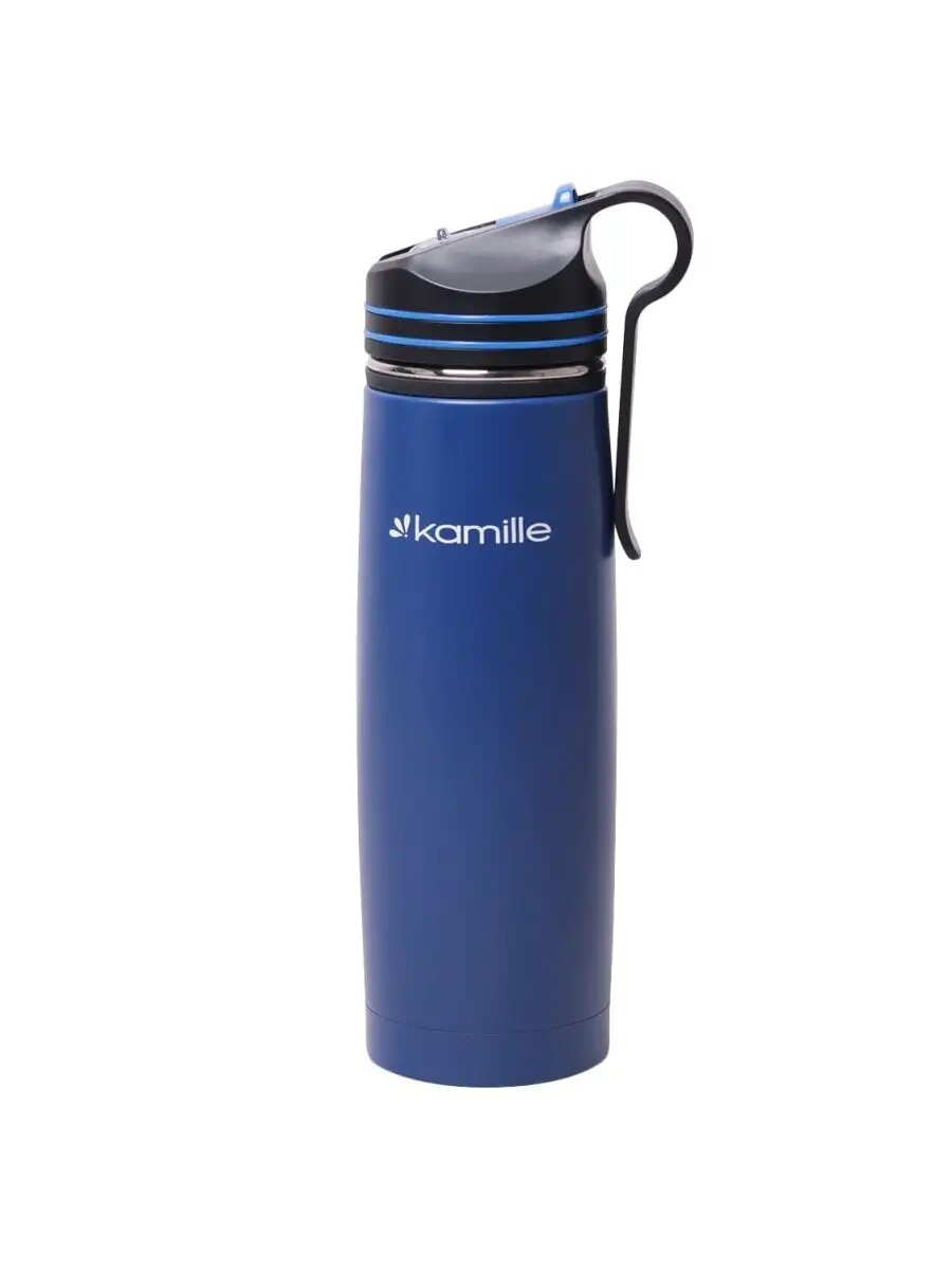 Купить KAMILLE KM2058 синяя Термобутылка 500мл с трубочкой и клипсой нержавеющая сталь синяя KAMILLE