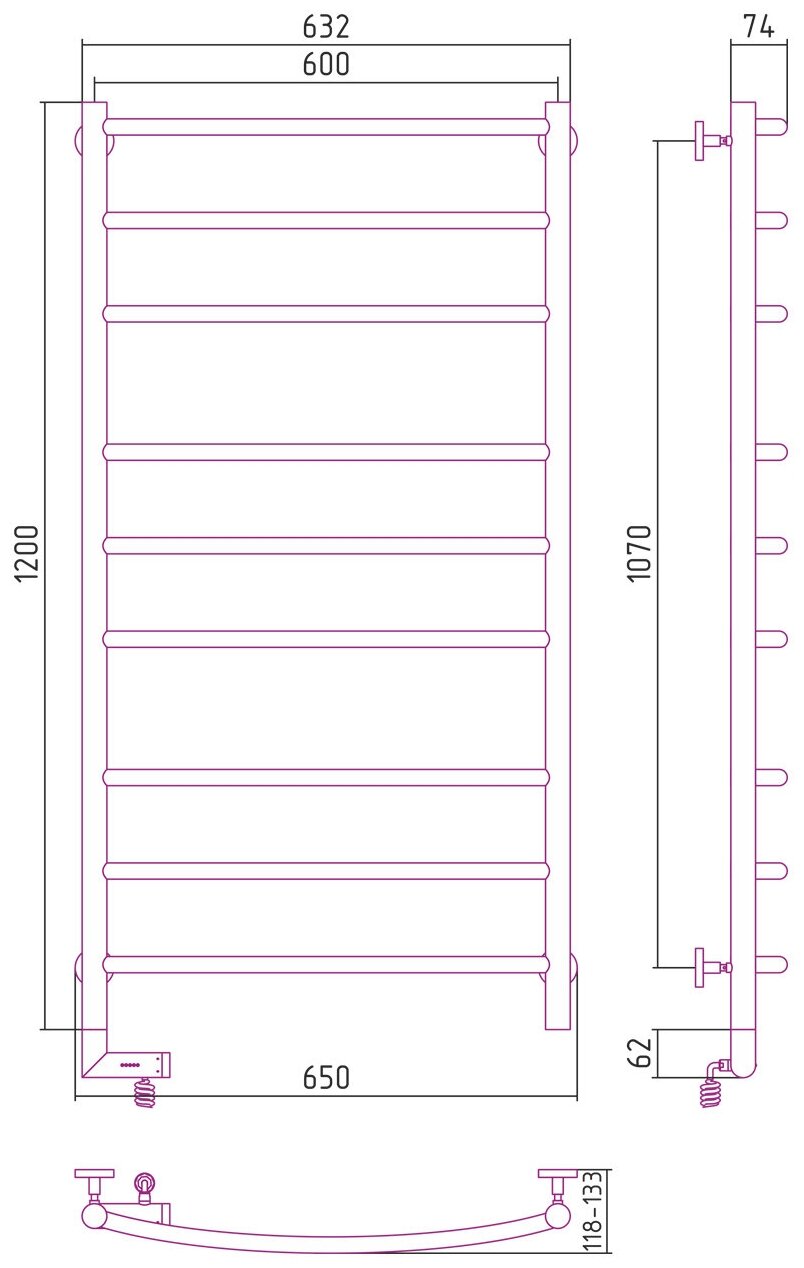 Полотенцесушитель Электрический Тругор Пэк сп 5 П 60х50 черный ВГП