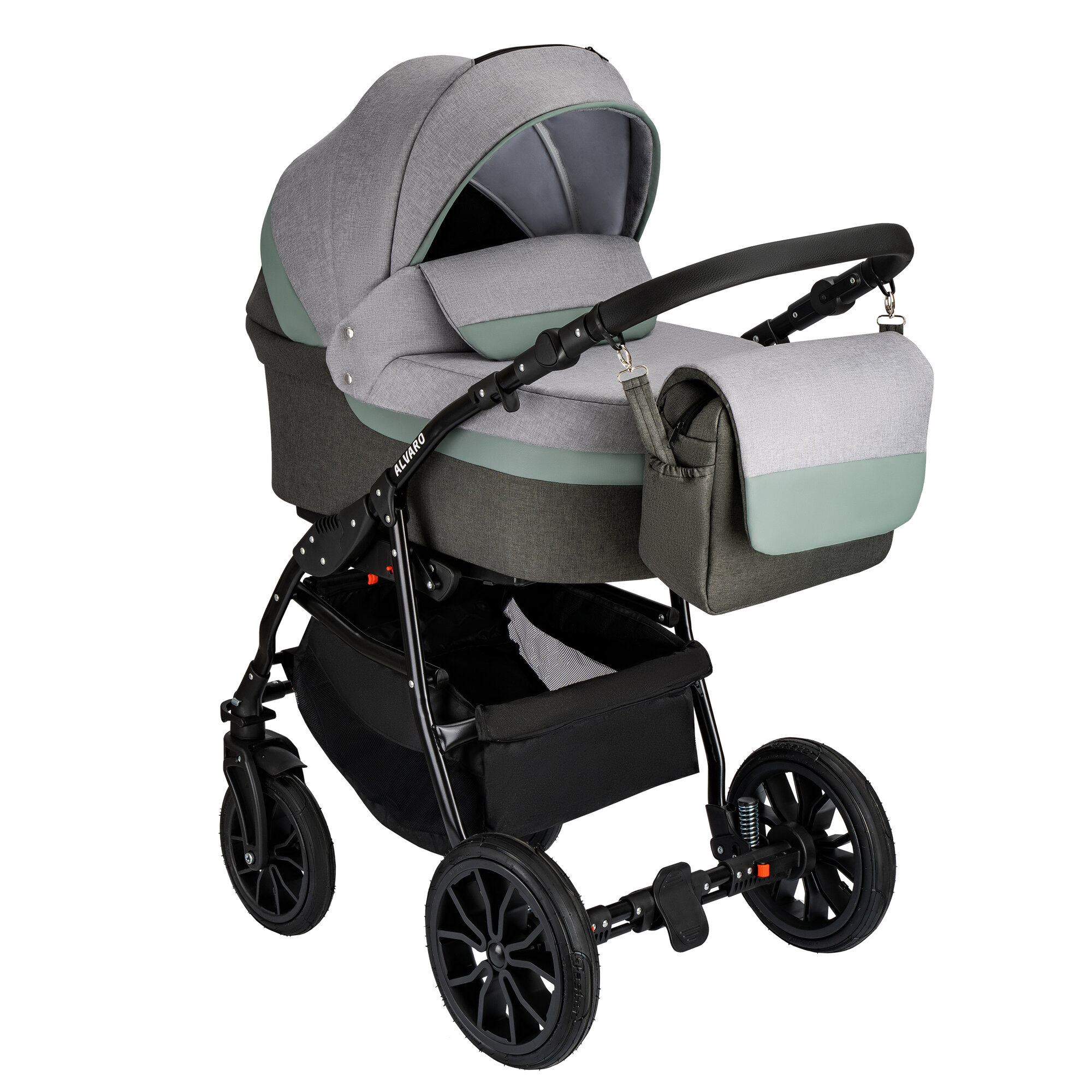 Купить Коляска 3в1 Alis ALVARO F универсальная с автолюлькой (10), т-серый, св-серый, шалфей