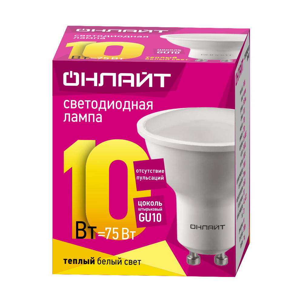 Лампа светодиодная онлайт 90 033, 10 Вт, цоколь GU10, теплый свет 3000К, упаковка 10 шт. интересное:
