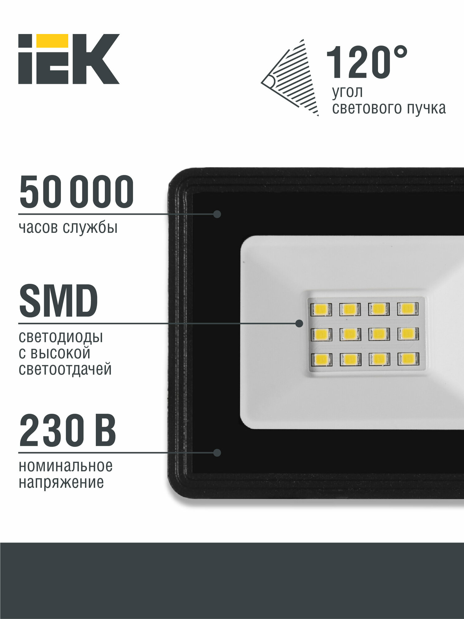 Прожектор светодиодный IEK СДО 06-10, 10 Вт, 6500 К, IP65, черный