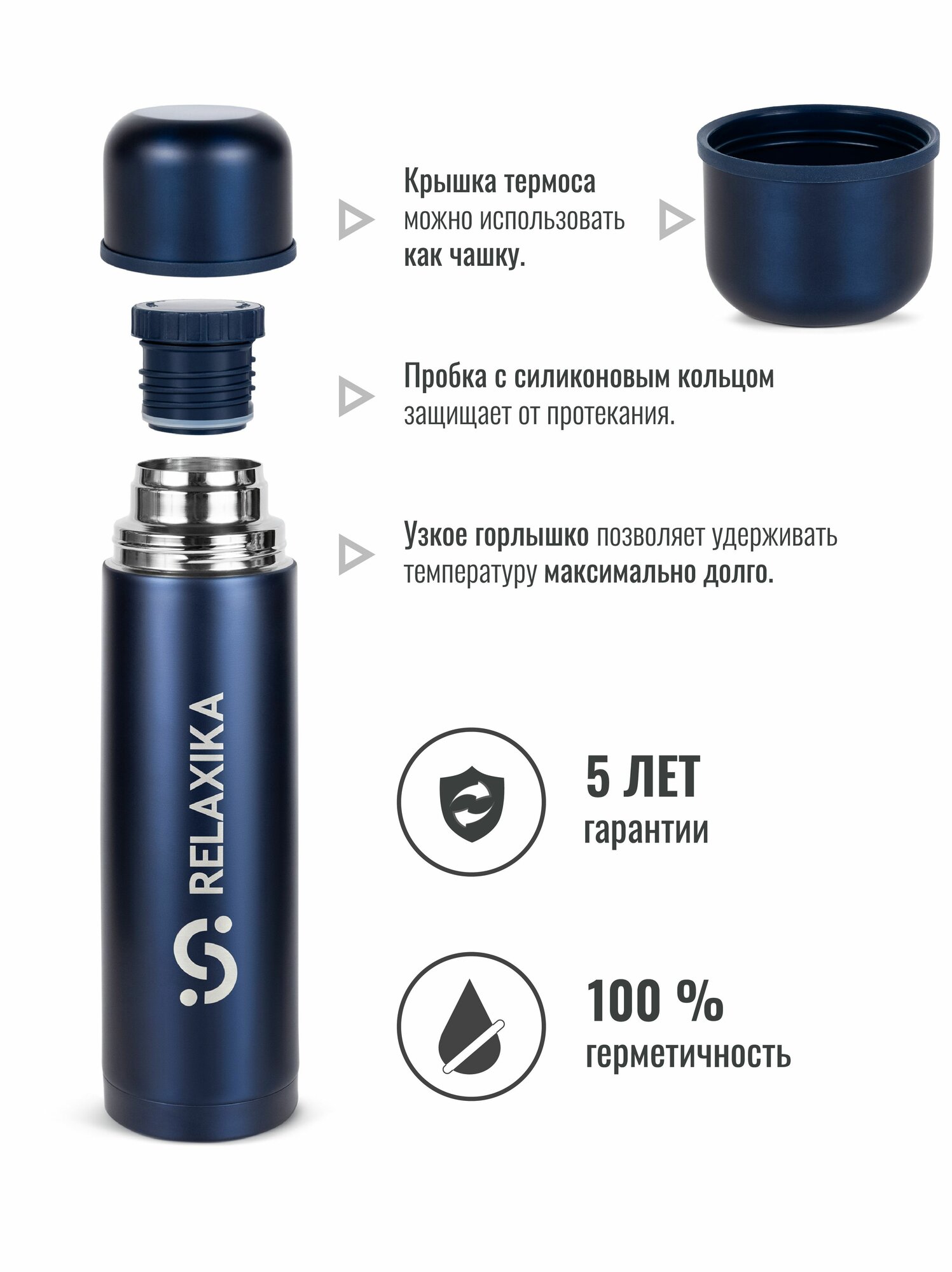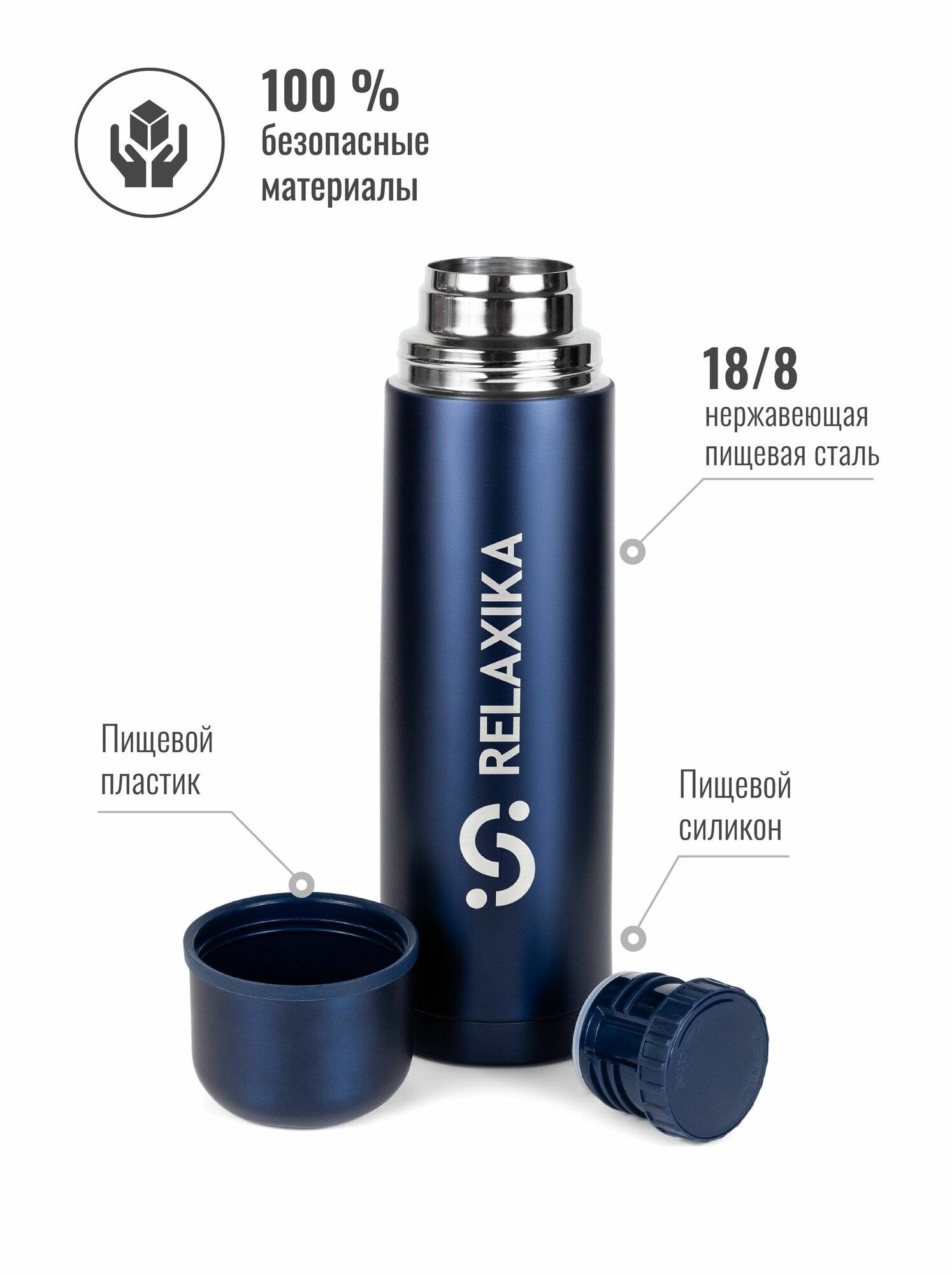 Термос Relaxika 101 (1 литр), темно-синий (без лого)