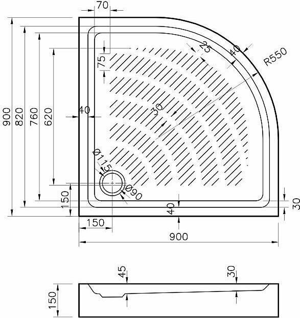 Комплект полукруглого душевого поддона с сифоном Lavinia Boho Rock 3707290S, 90 х 90 см