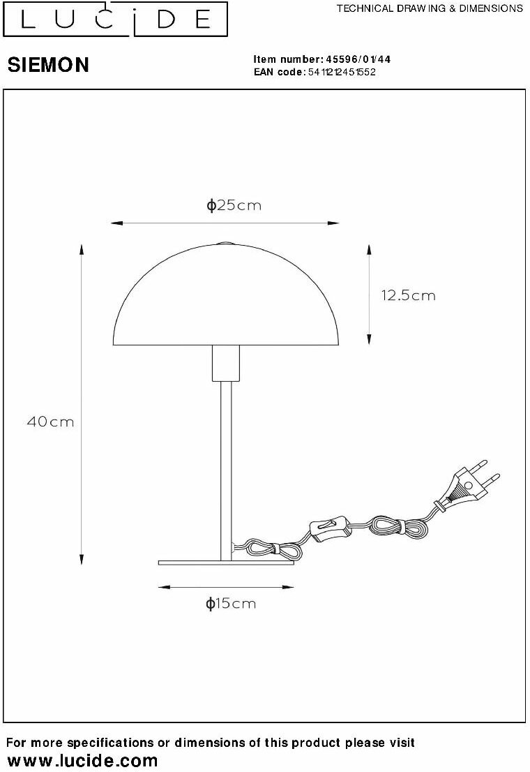 Лампа настольная Lucide Siemon 45596/01/44, цоколь E14, мощность 25Вт, металл