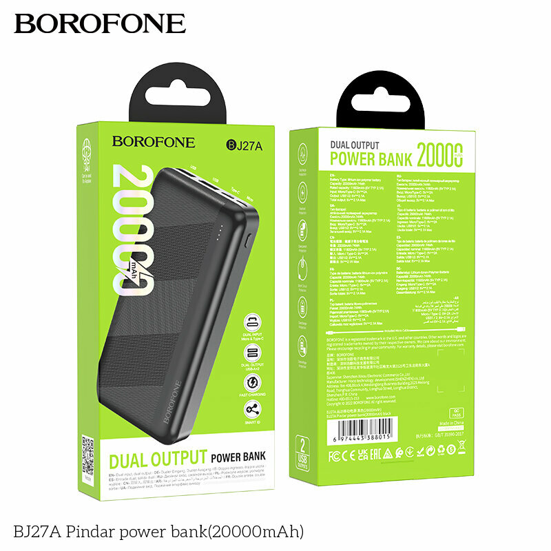 Внешний аккумулятор Borofone BJ27A Pindar, белый (20000mAh, 2xUSB, 2.1A)
