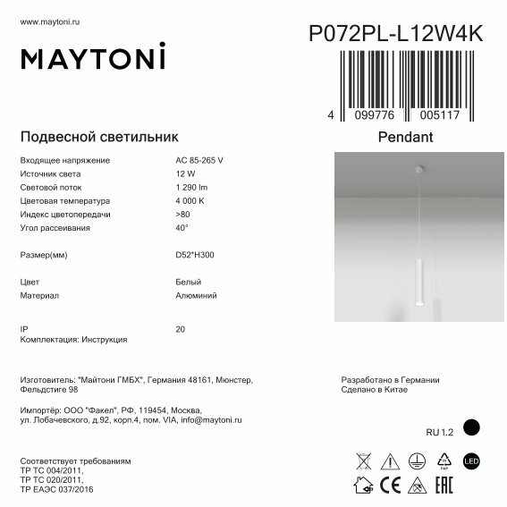 Купить Подвесной светильник Maytoni P072PL-L12W4K