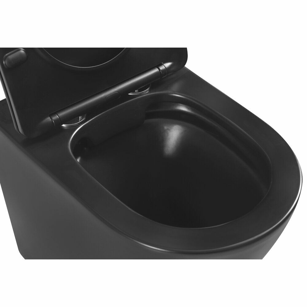 Купить Унитаз напольный, приставной, безободковый, сиденье микролифт, черный/матовый SantiLine SL-5020MB