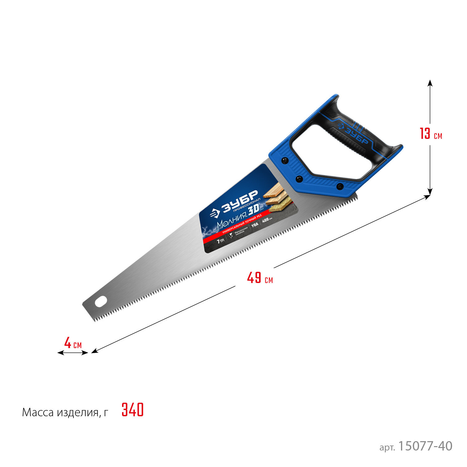 Ножовка по дереву ЗУБР Молния-3D 15077-40_z01, 400 мм