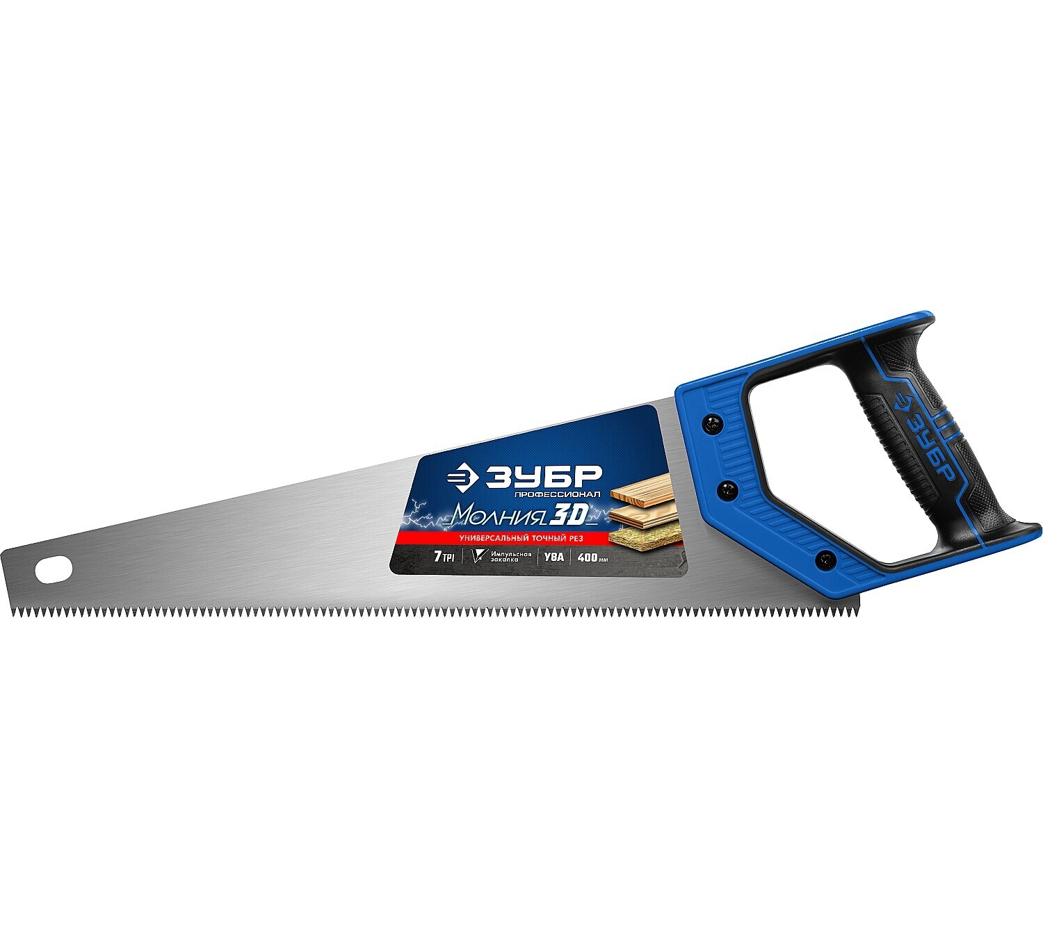 Ножовка универсальная (пила) ″МОЛНИЯ-3D″ 400мм, 7TPI, 3D зуб, точный рез вдоль и поперек волокон, для средних заготовок из всех видов материалов, ЗУБР (15077-40_z01)