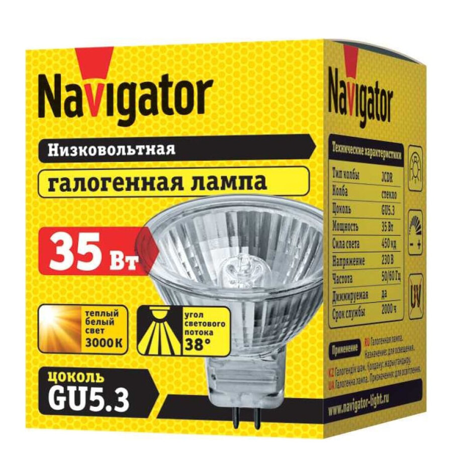 Лампа галогенная Navigator 94205, GU5.3, JCDR, 35 Вт, 3000 К