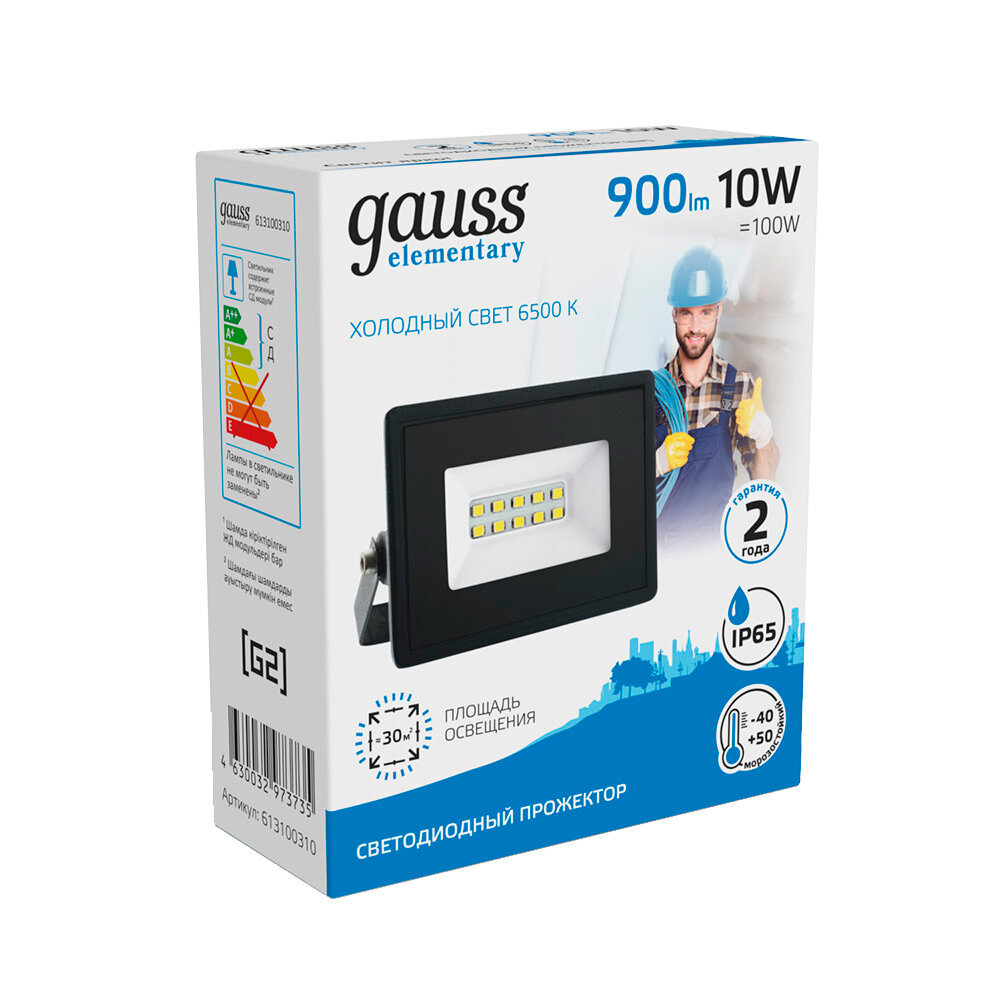 12шт. - Прожектор светодиодный LED до 10 Вт 850 Лм 6500К IP65 78х60х27 мм Elementary Gauss / GAUSS; арт. 613100310; оригинал / - комплект 12шт