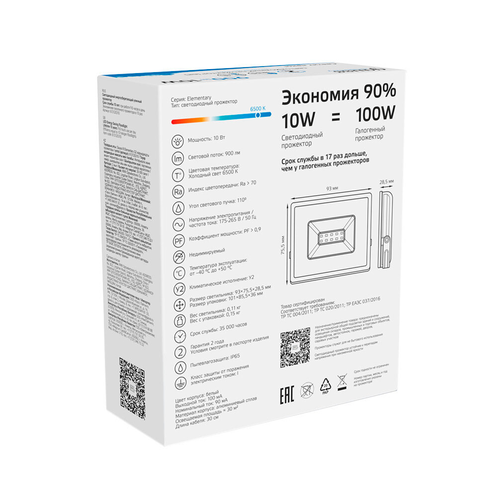 11шт. - Прожектор светодиодный LED до 10 Вт 850 Лм 6500К IP65 78х60х27 мм Elementary Gauss / GAUSS; арт. 613100310; оригинал / - комплект 11шт