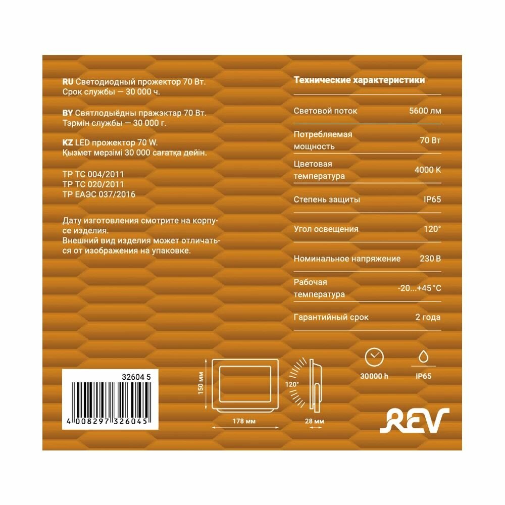 Прожектор светодиодный REV ДО-70 70 Вт 220 В IP65 205х150х25 мм 4000К (32604 5)