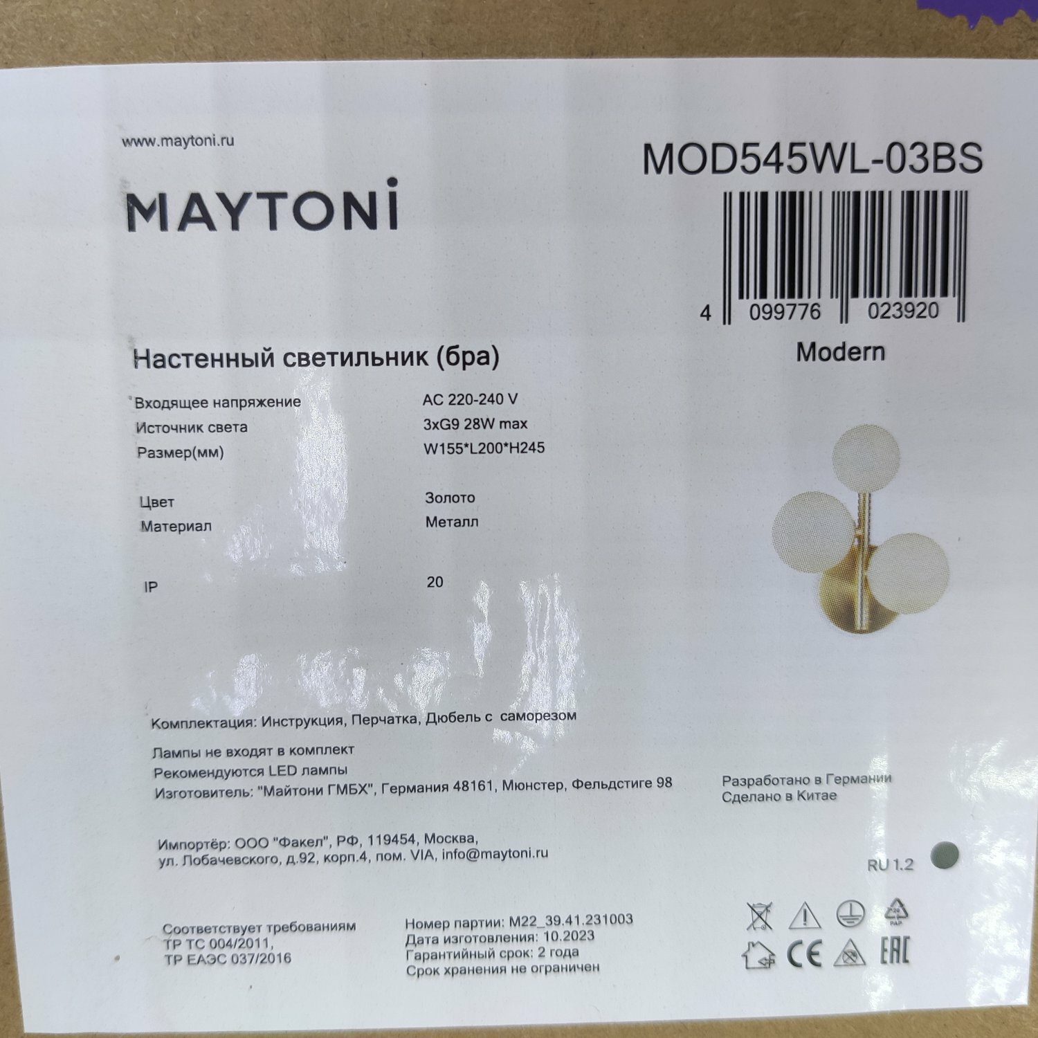 | Производитель | MAYTONI |