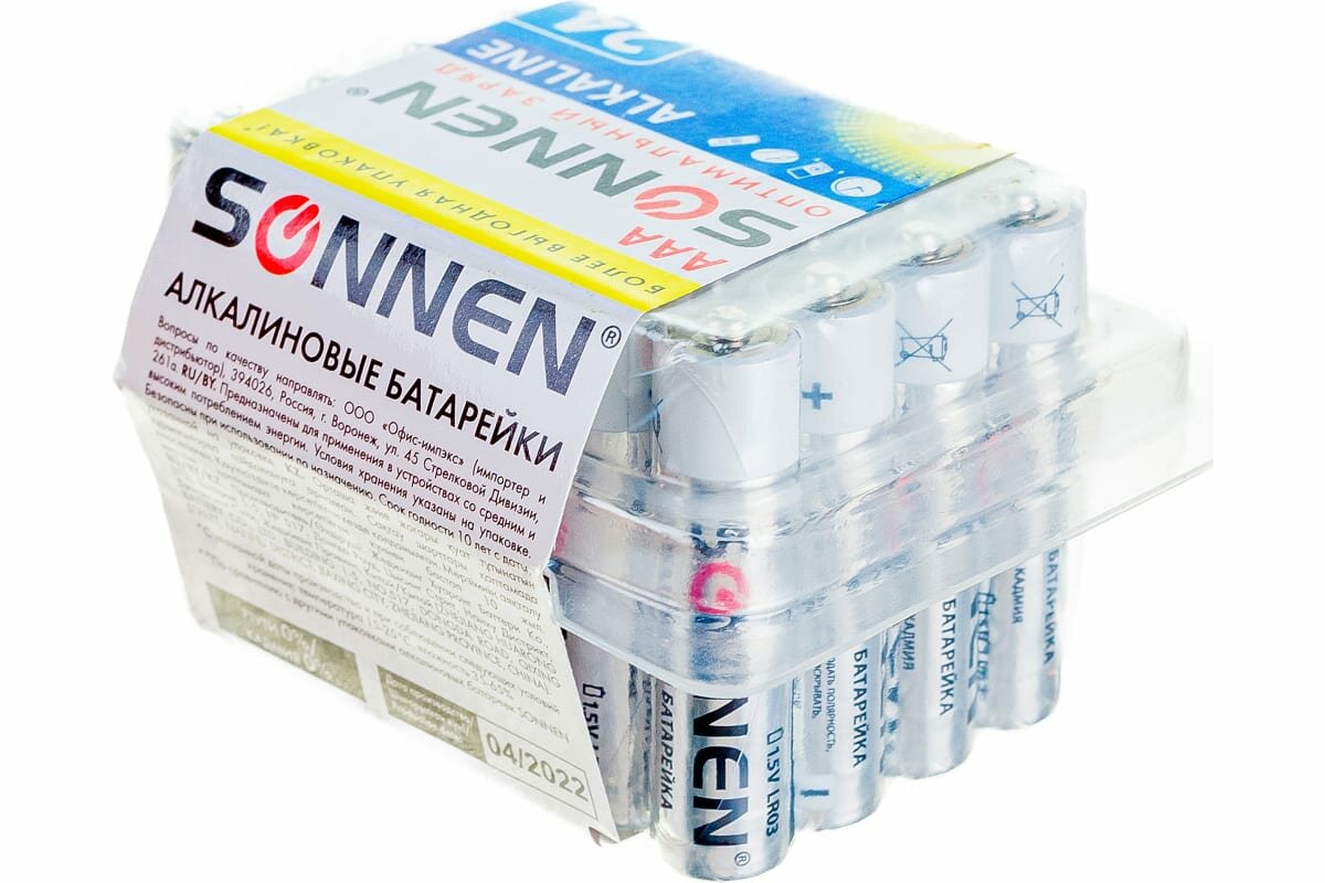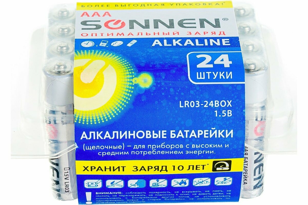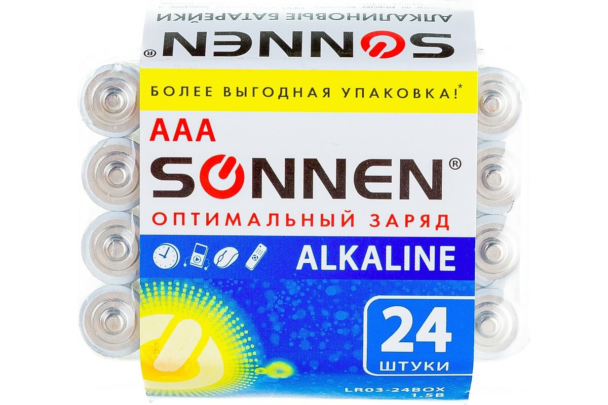 Ниже Вы можете прочитать отзывы на Батарейки комплект 24 шт, SONNEN Alkaline, ААА (LR03, 24А), алкалиновые, мизинчиковые, короб, 455096 В наборе: 1компл., ознакомится с подробными характеристиками, посмотреть интересные обзоры и фотографии на Батарейки комплект 24 шт, SONNEN Alkaline, ААА (LR03, 24А), алкалиновые, мизинчиковые, короб, 455096 В наборе: 1компл..