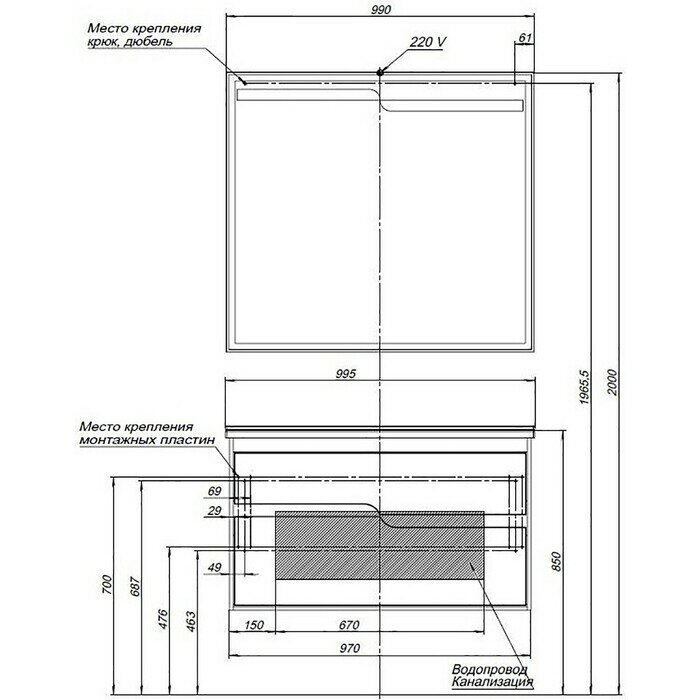 | Конструкция | подвесная |