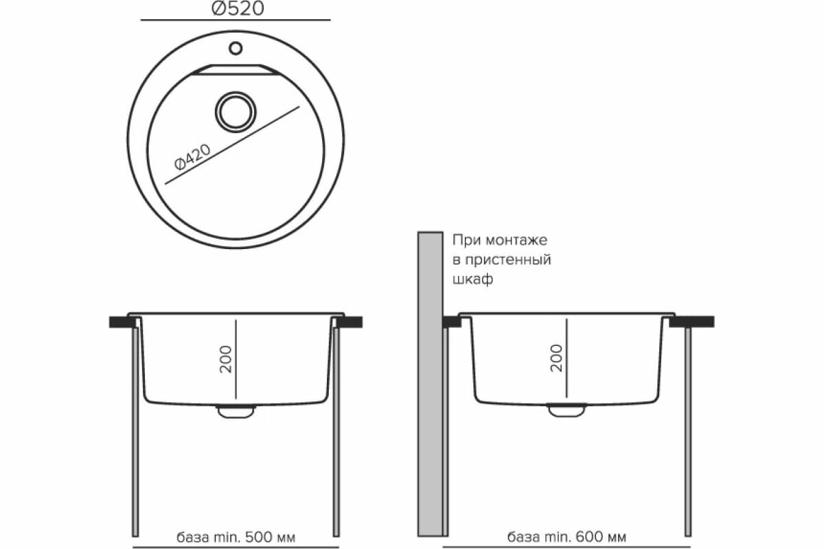 Мойки Polygran ATOL-520, мойка, мрамор, черный 16