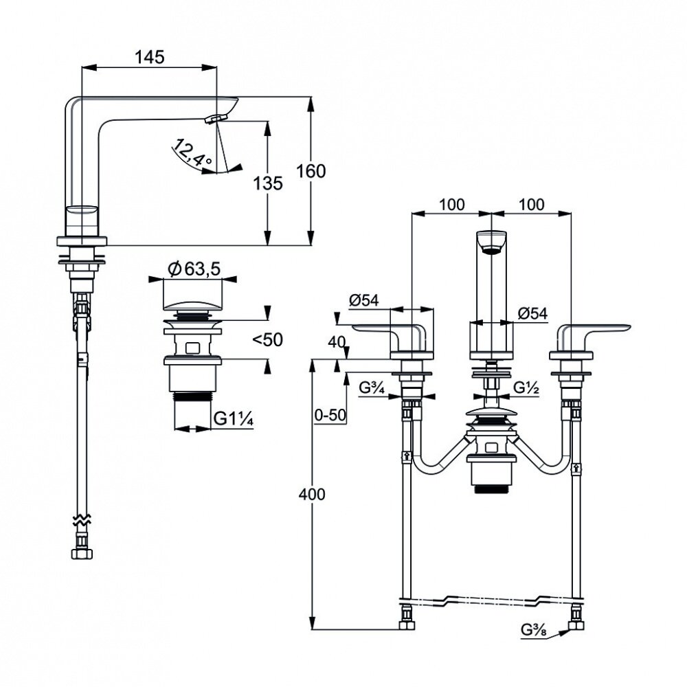 Kludi Смеситель для раковины Kludi Ameo 413930575 на 3 отверстия, рычаги плоские