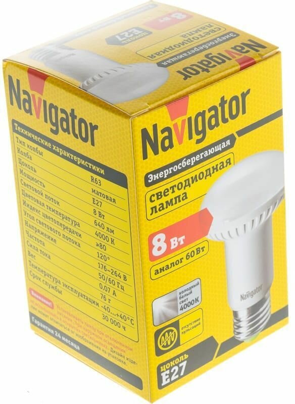 Ниже Вы можете прочитать отзывы на Лампа светодиодная Navigator E27 4000К 8 Вт 640 Лм 176-264 В рефлектор матовая, ознакомится с подробными характеристиками, посмотреть интересные обзоры и фотографии на Лампа светодиодная Navigator E27 4000К 8 Вт 640 Лм 176-264 В рефлектор матовая.