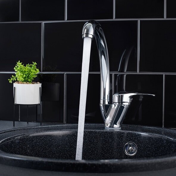 Смеситель для кухни, РМС SL50-011F, поворотный излив, однорычажный, с гибкой подводкой интересное: