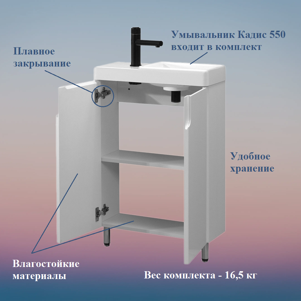 Комплект Тумба с раковиной Кадис Н 55 Белый глянцевый Левый