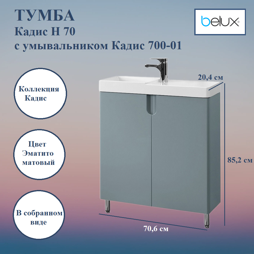 Купить Тумба с раковиной Кадис Н 70 Ematite матовый (148)Лев