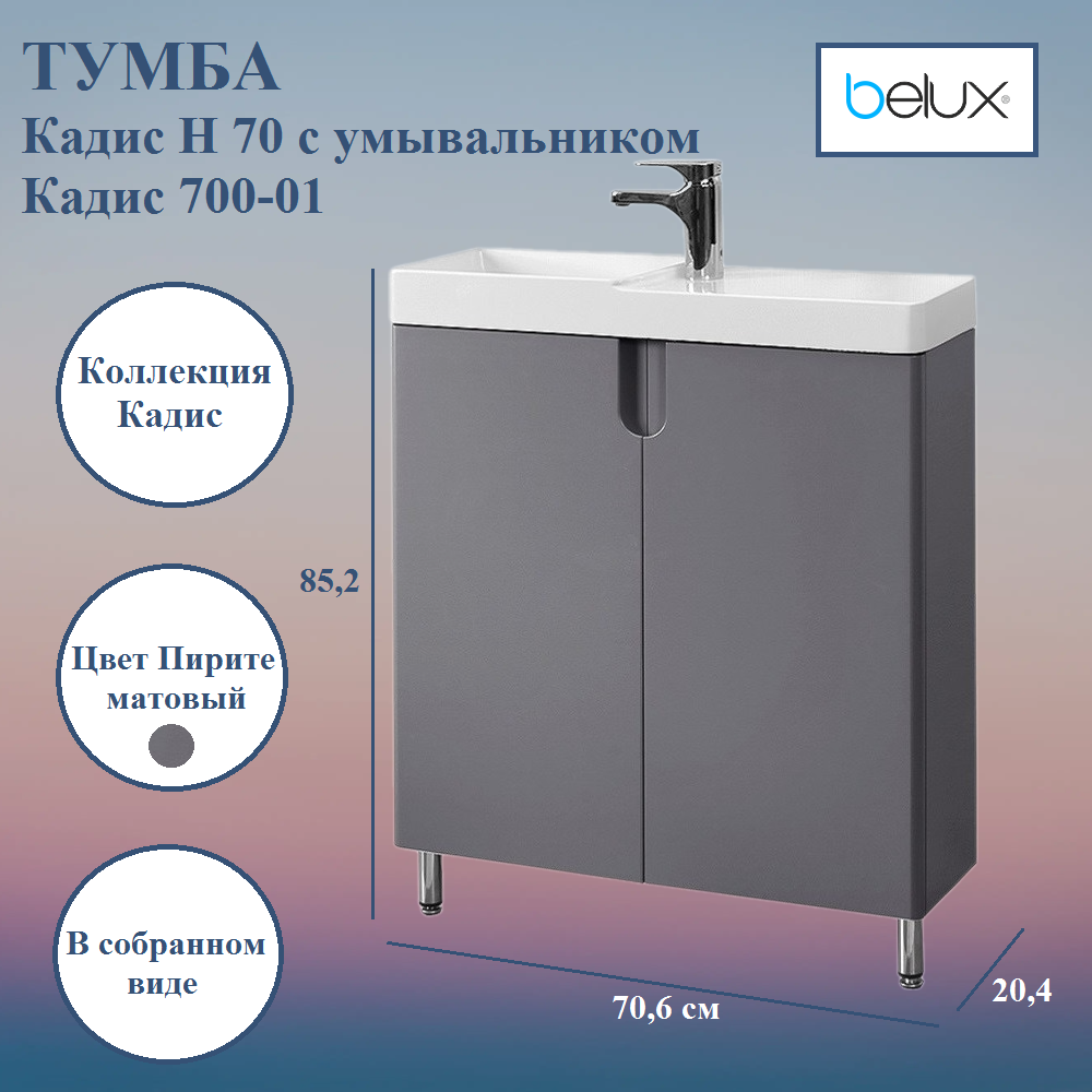 Тумба с раковиной Кадис Н 70 Pirite матовый (147)Прав