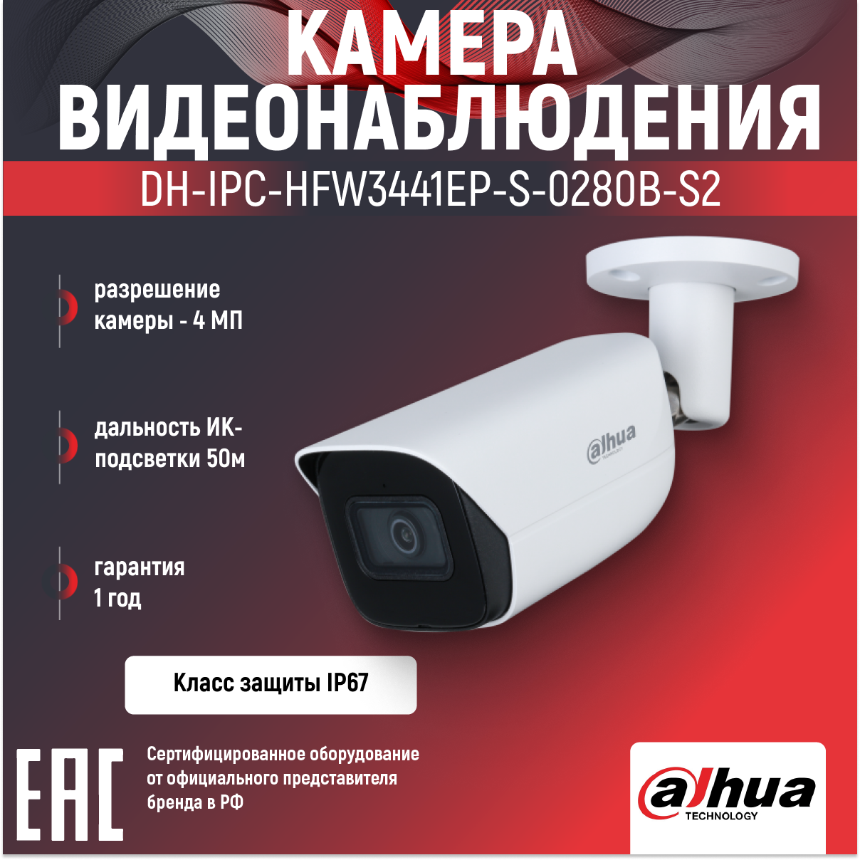 Видеокамера Dahua DH-IPC-HFW3441EP-S-0280B-S2 уличная купольная IP-видеокамера DH-IPC-HFW3441EP-S-02 .