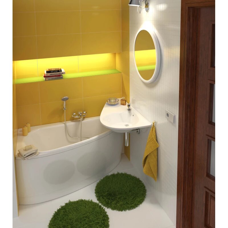 | Плюсы: | Форма идеальная для нестандартных размеров и расположения ванной или для небольших ванных комнат. |