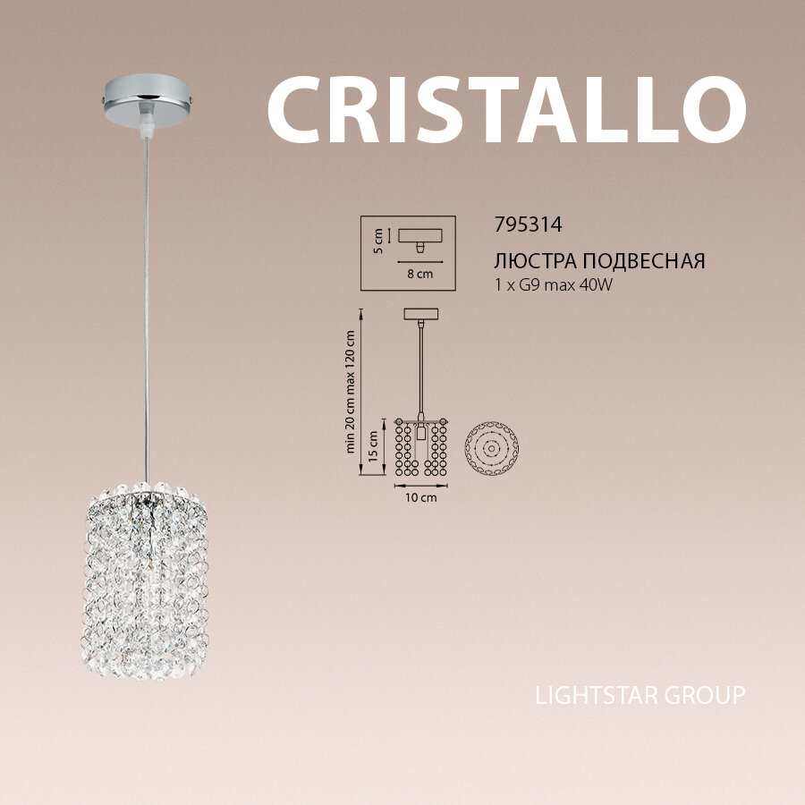 795424 Подвес CRISTALLO 1х40W G9 хром, шт