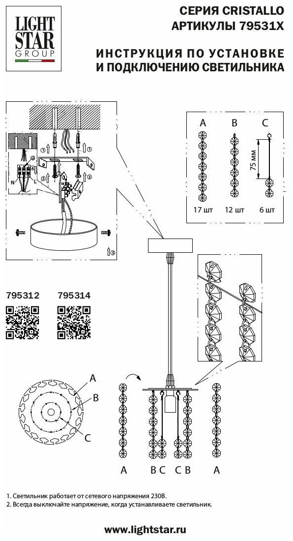 Lightstar Комплект с подвесом Lightstar Cristallo PRO795312