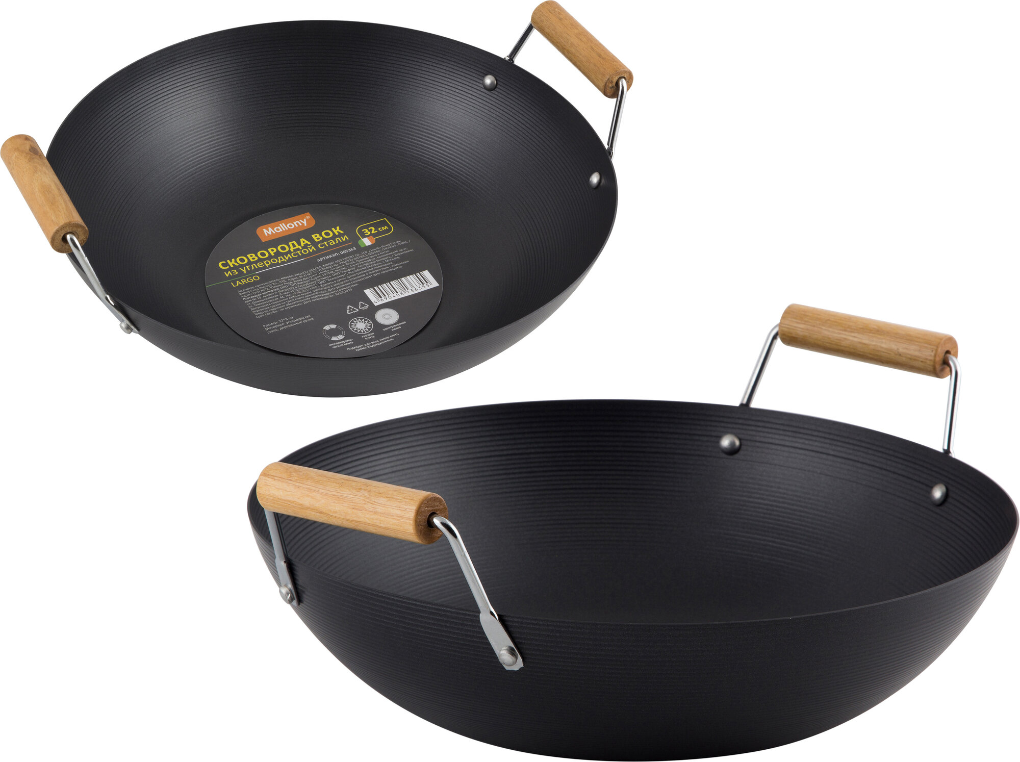 Сковорода-вок MALLONY Largo 32см антипр.покр. углер.сталь/дерево