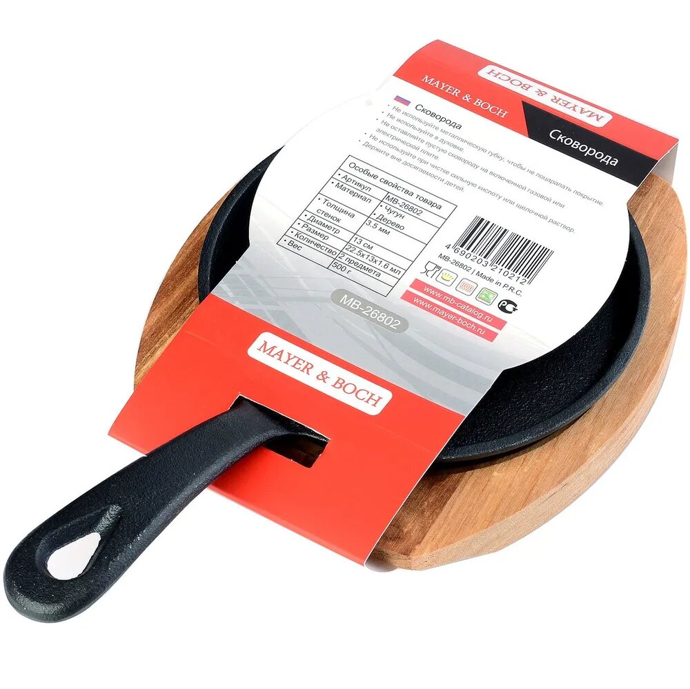 Mayer&boch сковорода 13 см mayer boch 26802 26802 Сковорода чугун 13см с дерев.подст. МВ(х12) 26802