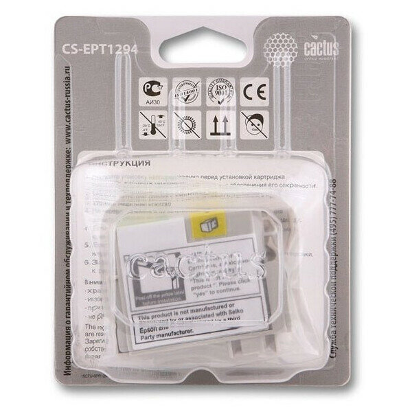 Купить Картридж Cactus CS-EPT1294 струйный картридж (Epson T1294 - C13T12944012) 10 мл, желтый