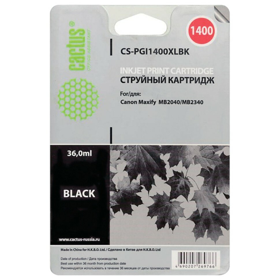 Картридж Cactus CS-PGI1400XLBK, для Canon, 36 мл, черный