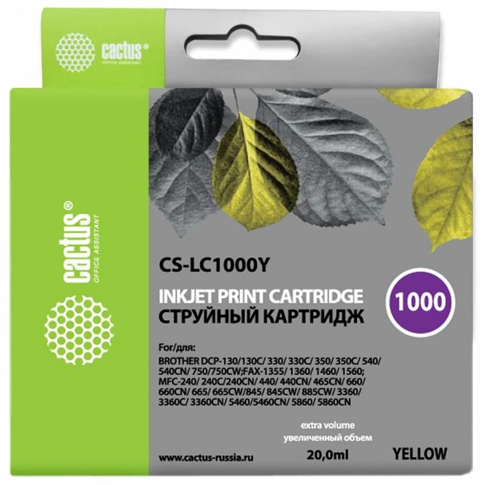 Картридж струйный Cactus CS-LC1000Y желтый (20мл) для Brother DCP 130C/330С/MFC-240C/5460CN