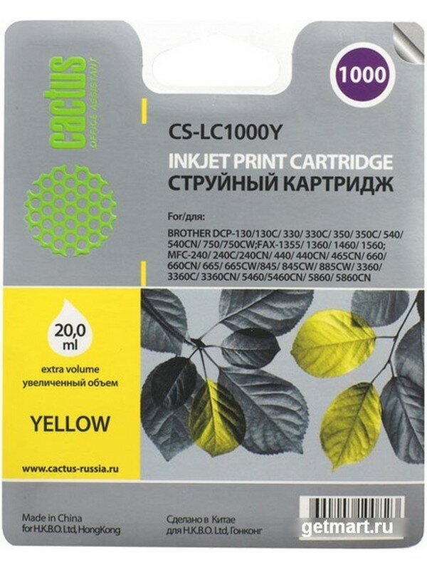 Ниже Вы можете прочитать отзывы на Картридж Cactus LC1000Y (CS-LC1000Y) желтый для Brother, ознакомится с подробными характеристиками, посмотреть интересные обзоры и фотографии на Картридж Cactus LC1000Y (CS-LC1000Y) желтый для Brother.