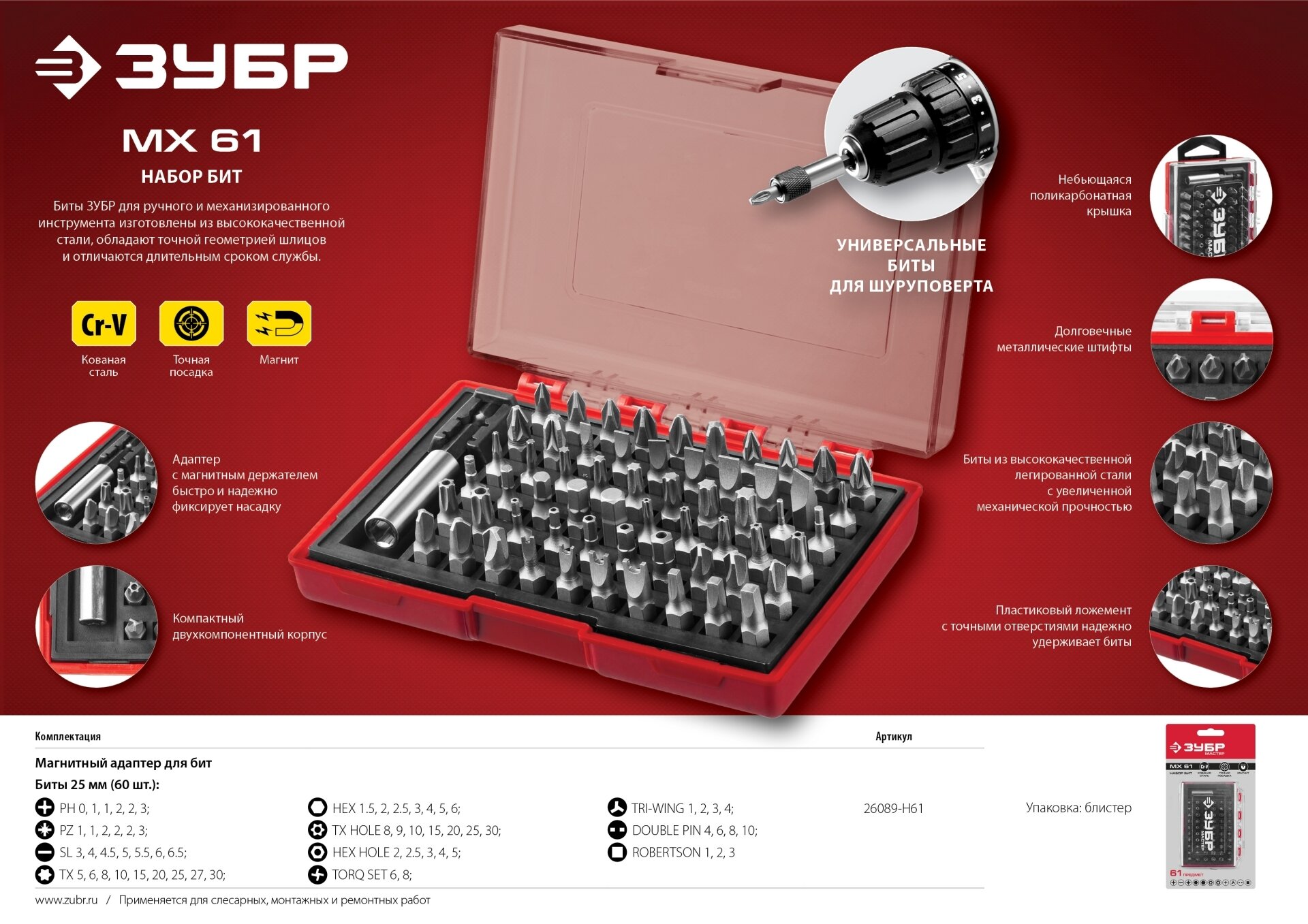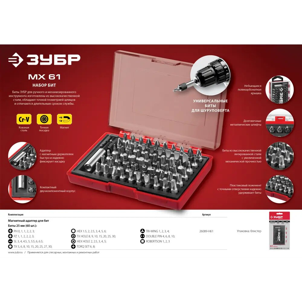 Биты Набор бит Зубр Мастер МХ-61 26089-H61 .