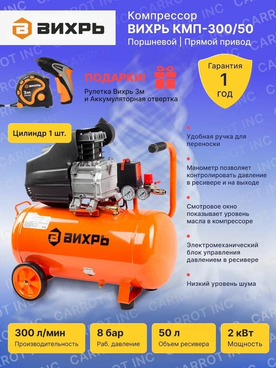 Ниже Вы можете прочитать отзывы на Компрессор Вихрь КМП-300/50 , Арт. 74/3/4, ознакомится с подробными характеристиками, посмотреть интересные обзоры и фотографии на Компрессор Вихрь КМП-300/50 , Арт. 74/3/4.