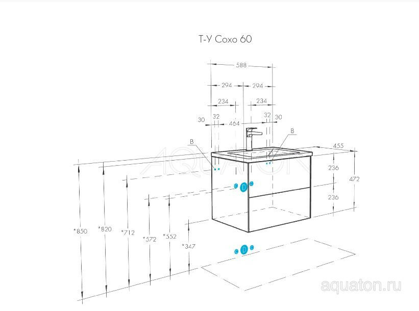 Купить Тумба с раковиной графит софт/дуб веллингтон 60 см Акватон Сохо 1A2580K1AJA00