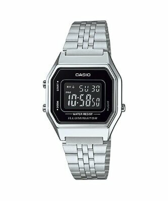 LA680WEA-1E Casio наручные часы кварцевые WR30 (3 атм) женские серебряный секундомер будильник отображение дня недели, отображение числа подсветка дисплея акриловое стекло