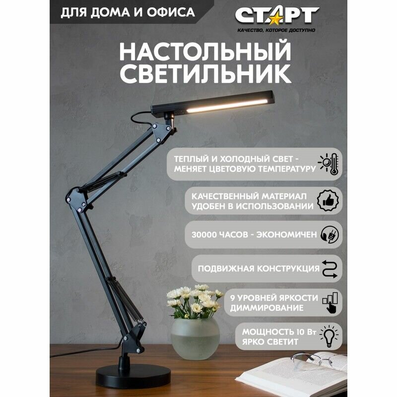 Светильник настольный старт на подставке 10Вт черный светодиодный 10 режимов яркости СТ211