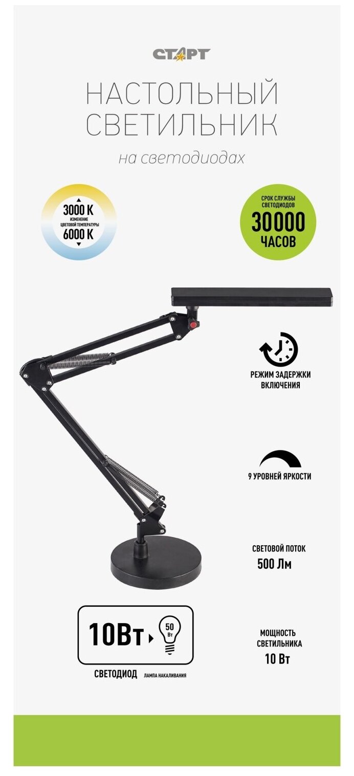 Светильник на струбцине старт СТ211, LED 10 Вт, 500Лм (диммирование), функция таймера