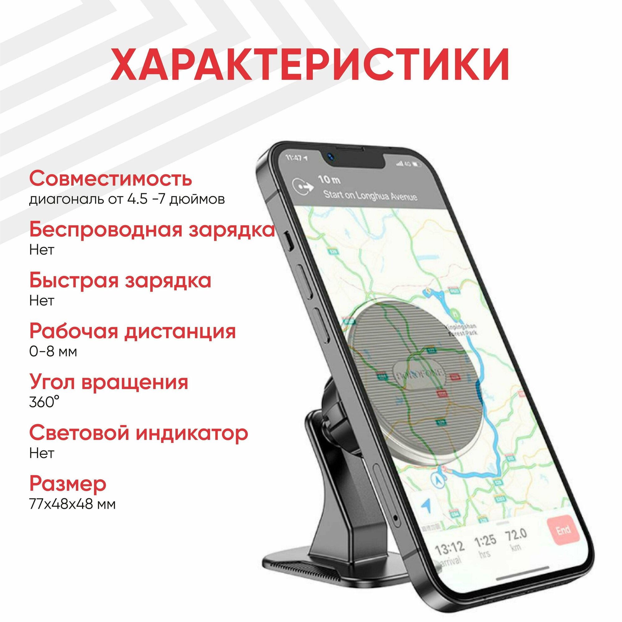 Автомобильный держатель BOROFONE BH63 магнитный, клеевая основа, 4,5-7", чёрный/серебро (32/128)