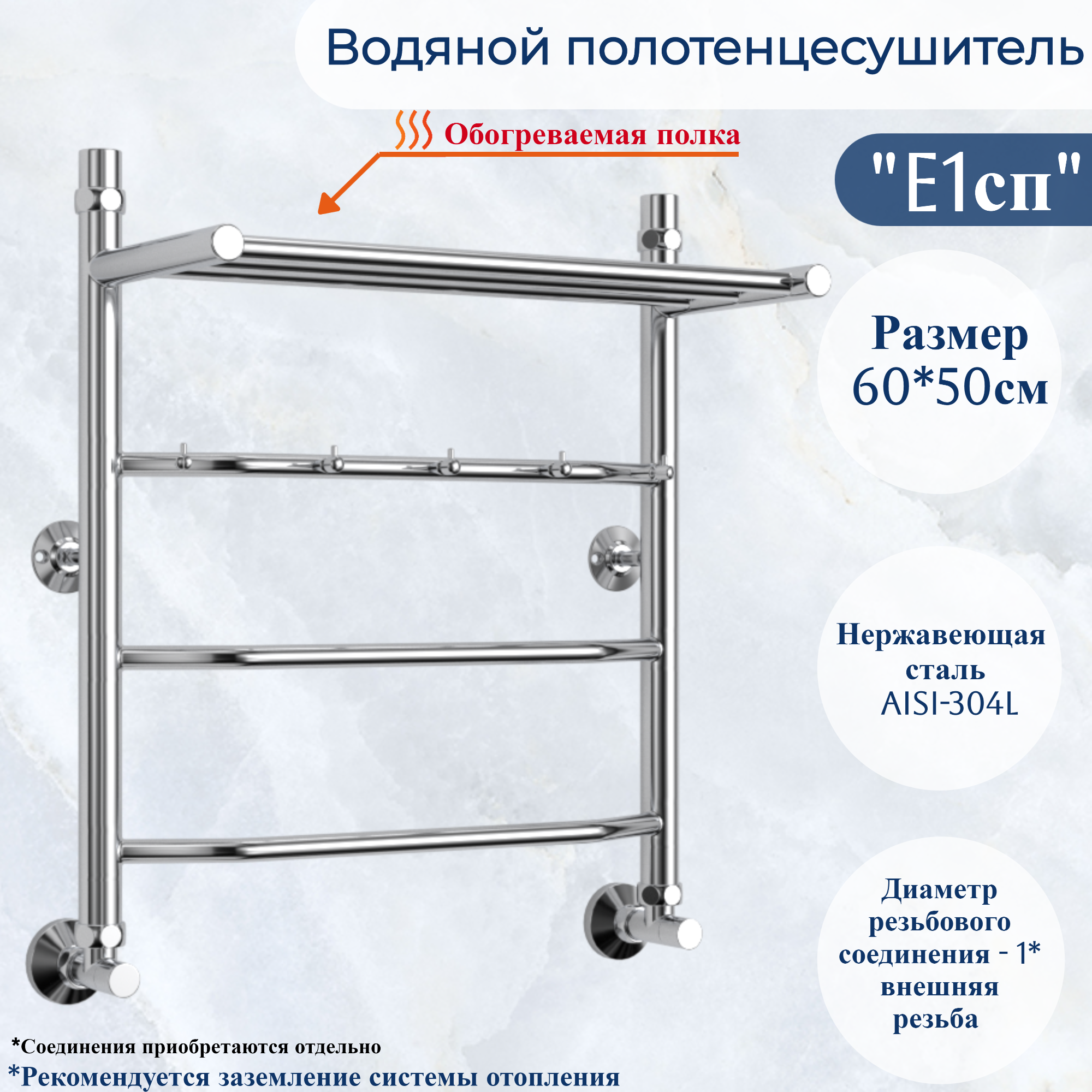 СохранитьВодяной полотенцесушитель юрма модель "E1сп" 60/50см из нержавеющей стали с полкой и крючками интересное: