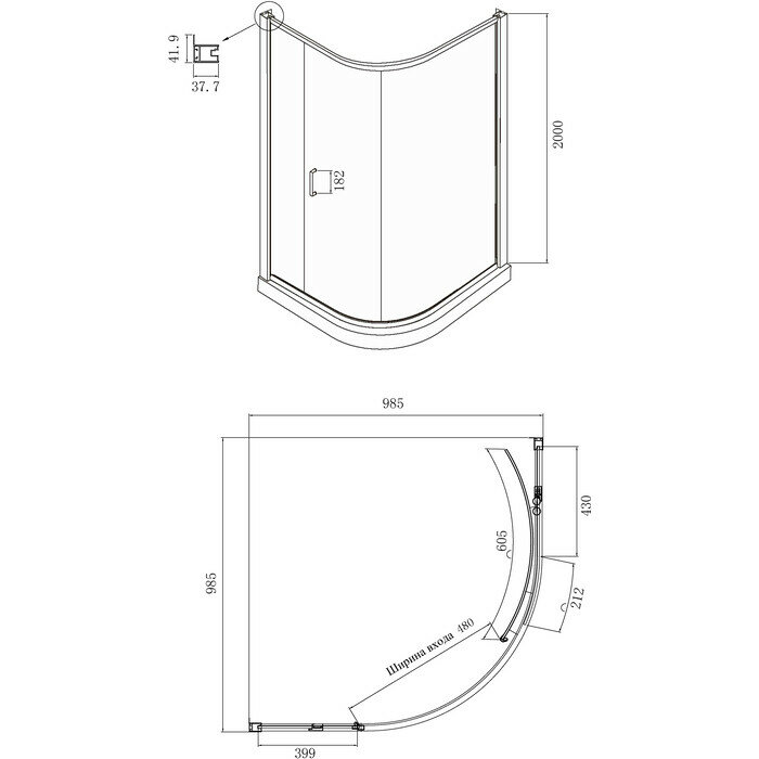 Душевое ограждение Ambassador Kingston 14011113 1000x1000x2000