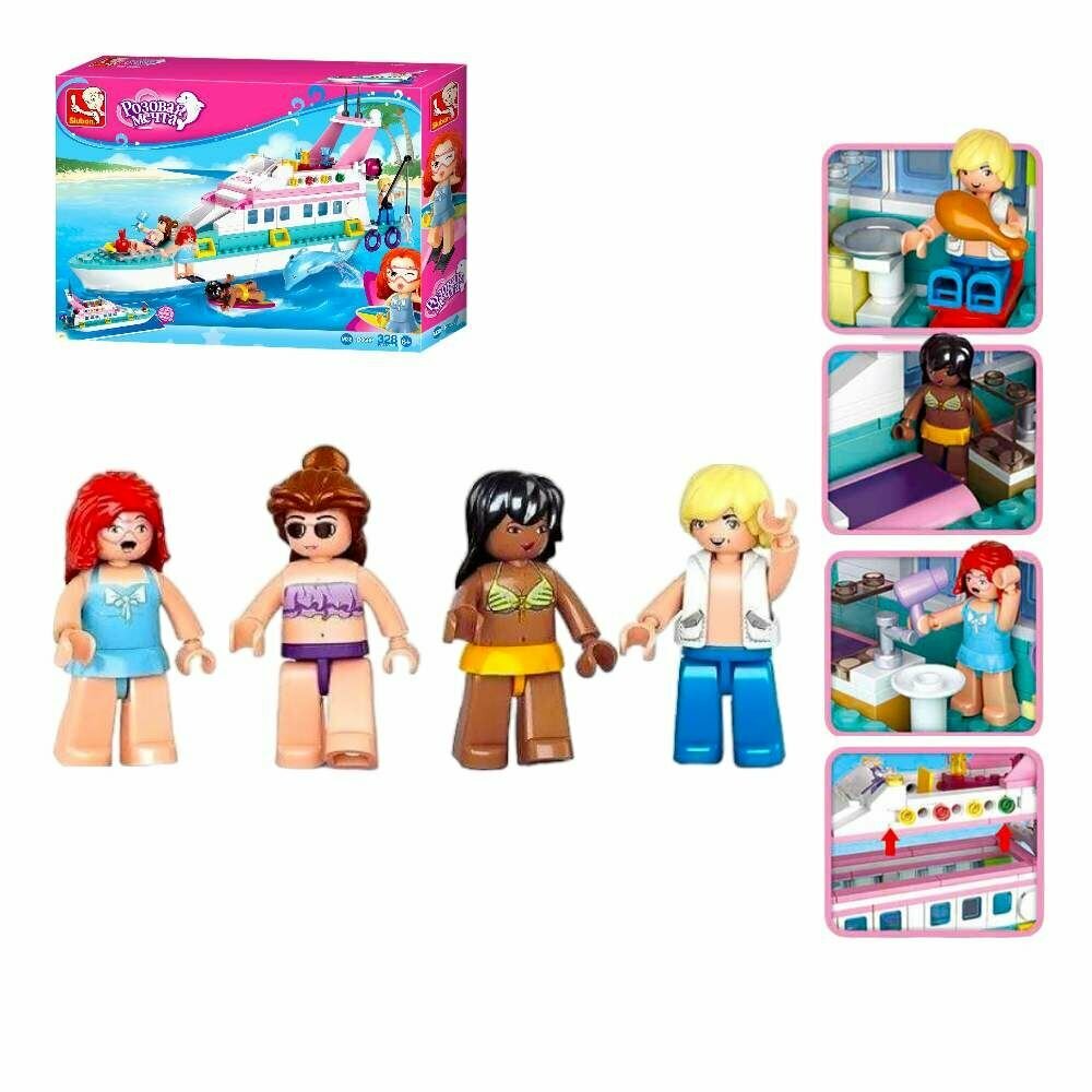 Конструктор SLUBAN Розовая мечта M38-B0609 Яхта люкс, 328 дет, 4 фигурки