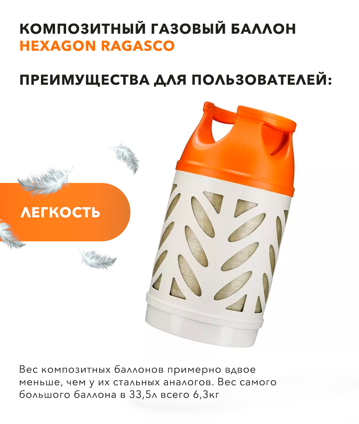 Композитный газовый баллон Ragasco LPG 12,5л. (Рагазко 12.5) (Hexagon Composites)